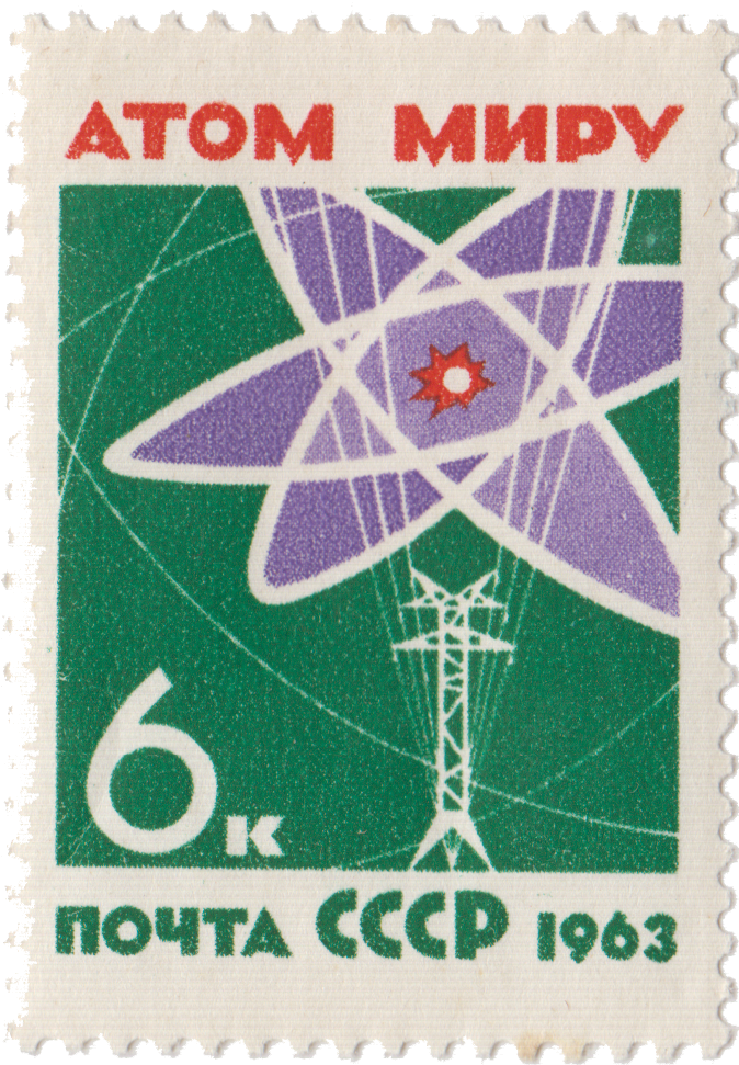 Одна из марок серии называлась «Атом миру» и символизировала невоенное использование атомной энергии. К этому времени в мире уже функционировали более десяти атомных электростанций, и строительство новых энергоблоков продолжалось.